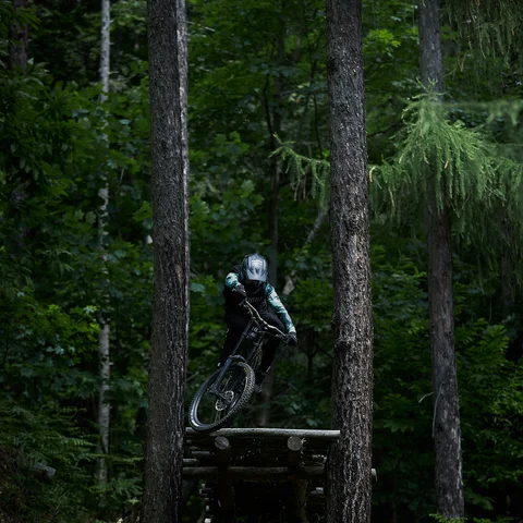 Der Burgwald Trail ist die erste offizielle Freeride- und Endurostrecke in Vorarlberg und liegt bei der Bergbahn Lech–Oberlech sowie der Petersbodenbahn – konzipiert für Anfänger und ambitionierte Mountainbiker. Mit den Schwierigkeitsstufen Blau (Easy), Rot (Hard) und Schwarz (Extreme) ist für jedes Niveau etwas dabei: Einsteiger genießen die durchgehende Easy-Line, während Fortgeschrittene auf abzweigende Teilstrecken mit wechselnden Anforderungen wechseln können. Anlieger- und Holzkurven, North-Shore-Elemente, Drops und technische Challenges sorgen für Abwechslung, Highlights sind das 50 m lange „Anaconda“-North Shore, der Skinny Boardwalk sowie der Patrese-Sprung mit anschließendem doppelten Road-Gap.